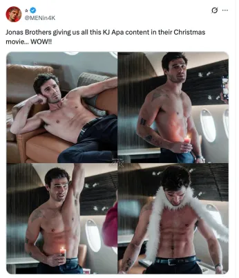 As “A Very Jonas Christmas Movie” continues to stream, KJ Apa’s strip-down is sparking conversations about visibility, joy, and the evolving landscape of holiday entertainment. It’s a reminder that representation isn’t always about explicit narratives—it’s about creating moments where queer audiences feel seen, included, and celebrated. So whether you’re watching for the music, the cameos, or the abs, this year’s holiday movies are serving up a little more sparkle—and a lot more queer joy—than ever before.